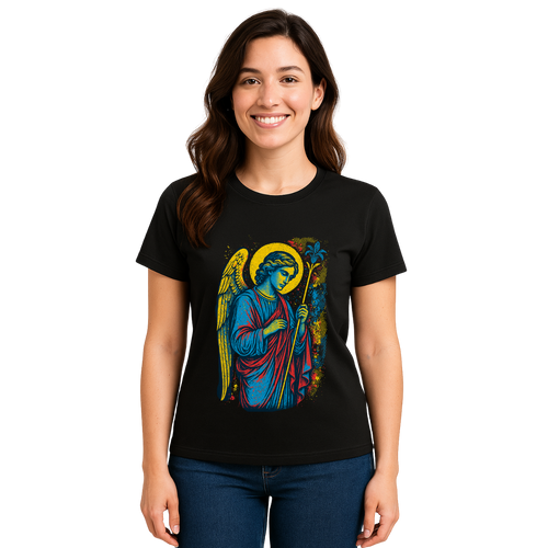 Camiseta Masculina Algodão Virgem Maria Fé e Proteção -